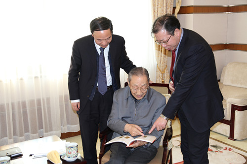 李岚清认真听取了学校成功实现省部共建,以及加强学科建设、科学研究、师资队伍等方面工作成效的情况汇报,重点询问了学校“十三五”改革发展规划编制情况,欣然接受了学校赠送的《任中敏全集》,并详细了解了任中敏先生的生平事迹。李岚清指出,扬州大学开创了高校体制改革的先河,合并办学以来尤其是近年来,学校在科技创新方面坚持“顶天立地”,强化学科的应用性和高水平师资队伍建设,在人才培养、科学研究、社会服务、文化传承与创新等方面,取得了长足发展,作出了重要贡献。